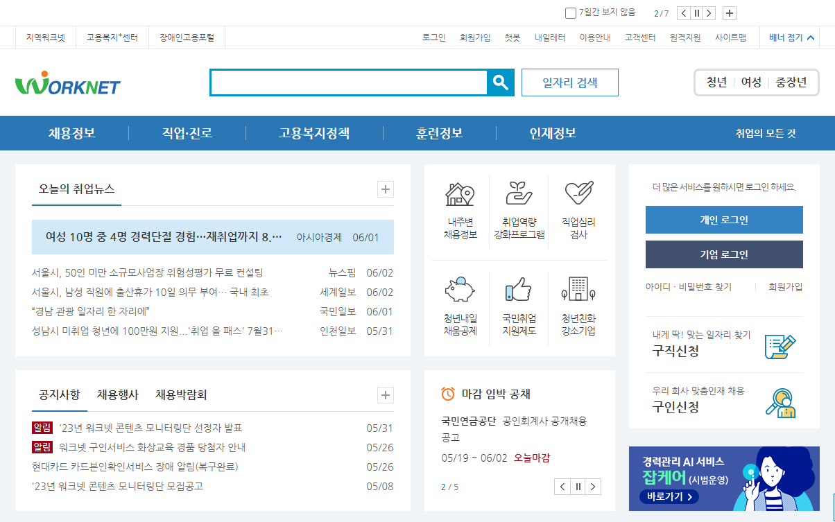 워크넷에 이력서와 자기소개서를 등록해서 구직신청을 합니다. 기존에 등록되어 있다면 조금 수정해도 상관없습니다.
